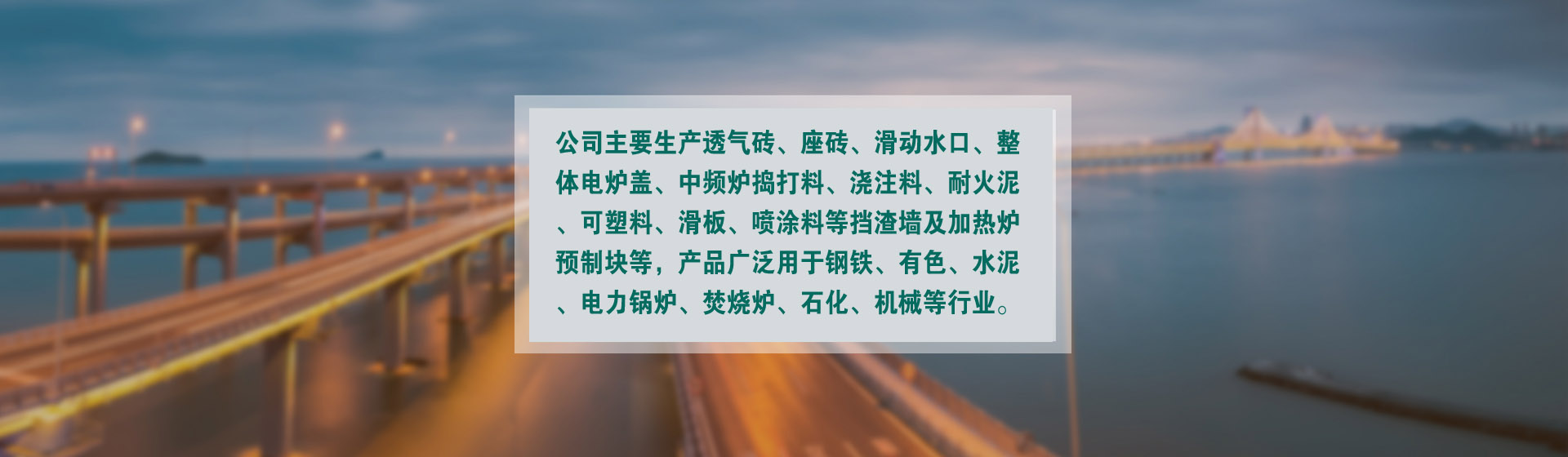 公司主要生產滑板、上下水口、滑動水口、鋼包座磚、透氣磚、座磚、整體電爐蓋、擋渣墻及加熱爐預制塊等;不定形產品主要生產中頻爐搗打料、澆注料、耐火泥等。